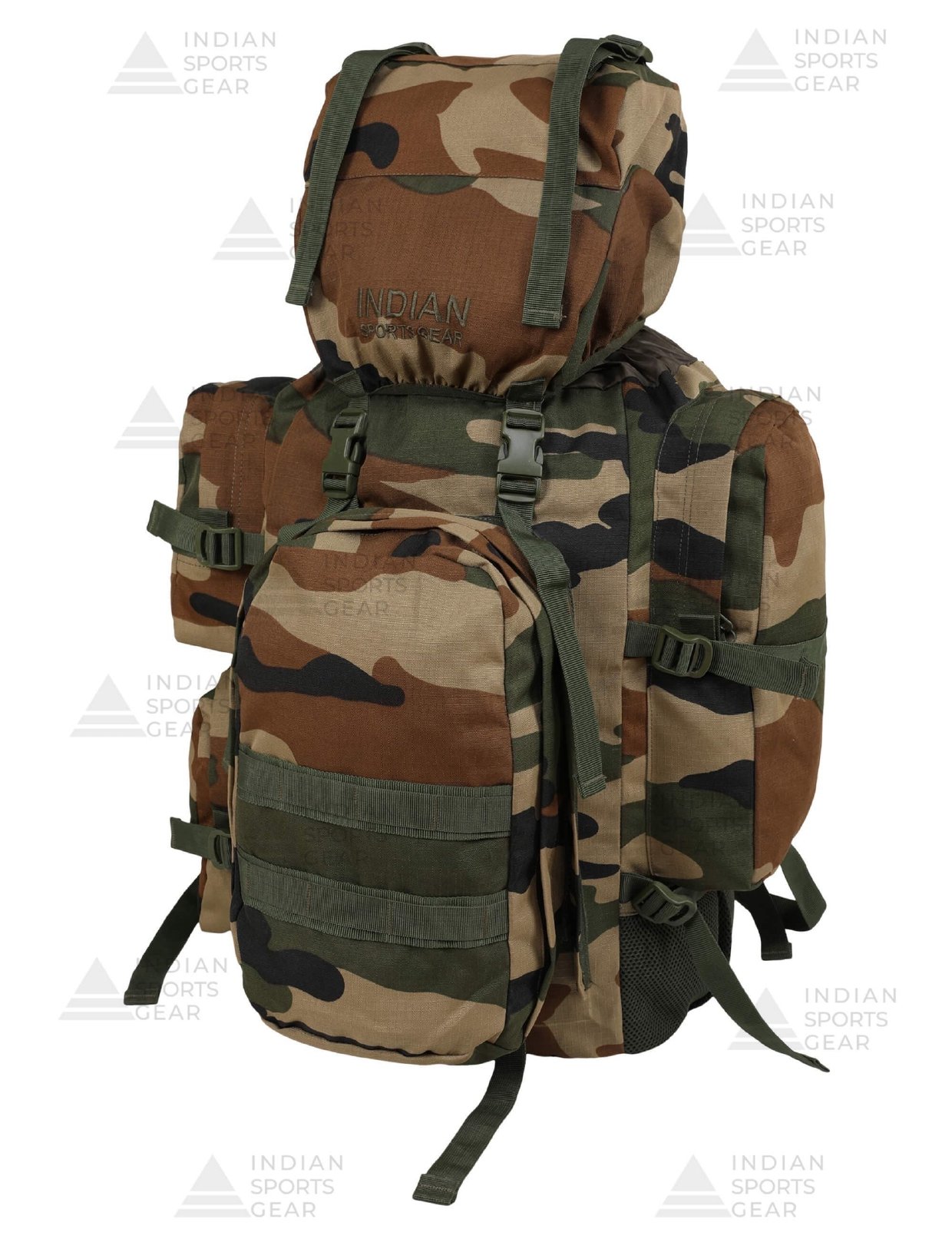 Featuring multiple compartments and pockets, the rucksack offers efficient organization for gear, clothing, and supplies. The main compartment is accessible via a top flap or side zippers, ensuring easy access to essentials. Additional external pockets provide quick access to smaller items, while molle webbing allows for further customization with compatible pouches and gear.