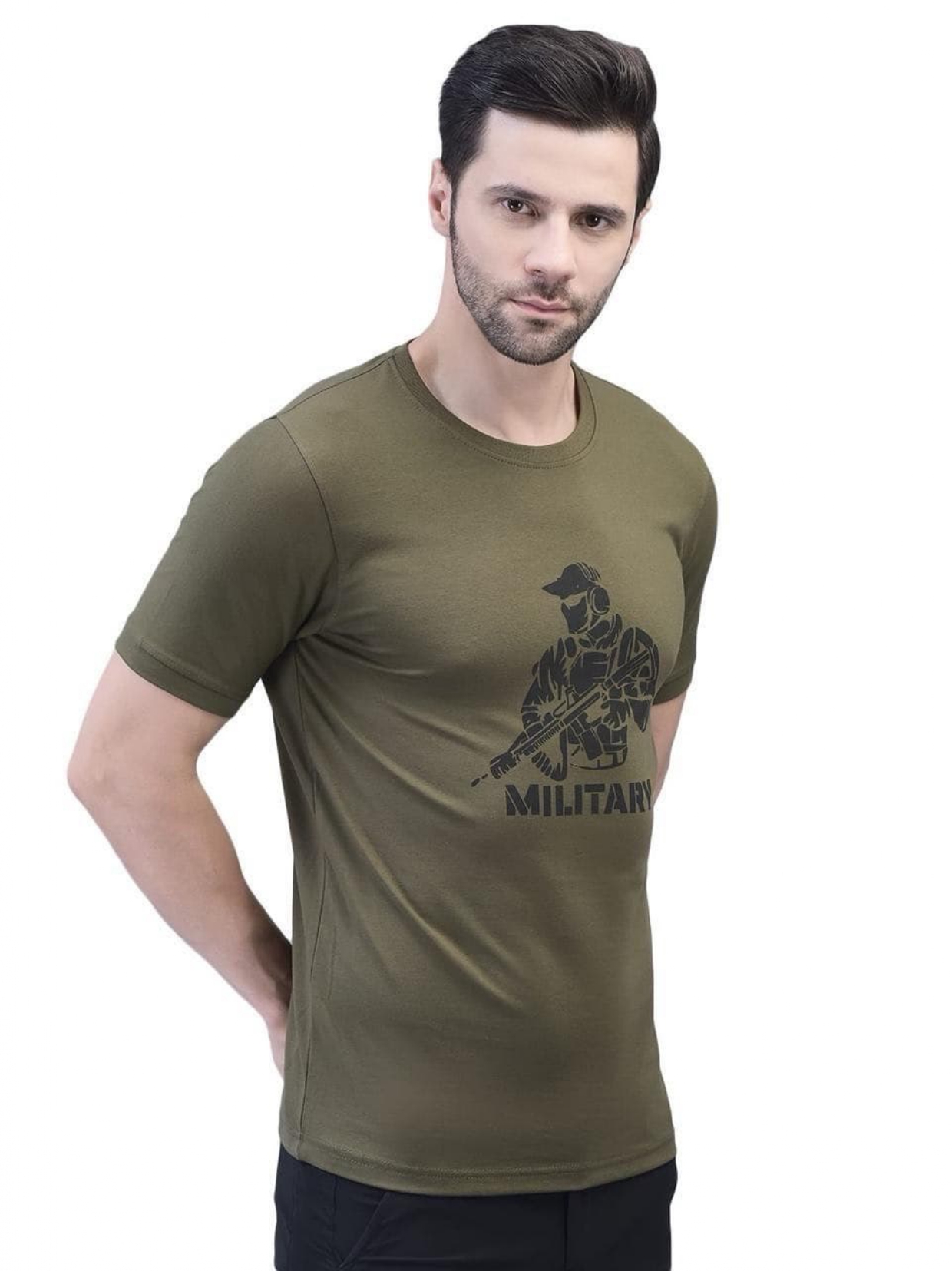 "Show off your bold, military-inspired style with this Green Cotton Lycra Tee, featuring a sleek front military logo. Made from a premium blend of cotton and lycra, this t-shirt offers the perfect balance of comfort, stretch, and durability. Its breathable fabric ensures all-day comfort, whether you're working out, running errands, or enjoying a casual day out. The iconic military logo adds a distinctive touch, making it a must-have for those who love combining fashion with function. Elevate your everyday look with this versatile and stylish tee."
