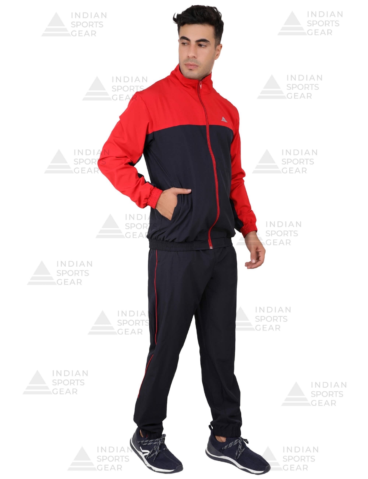 With the Indian Sports Gear Red and Black Track Suit, you can elevate your look while still maintaining practicality.